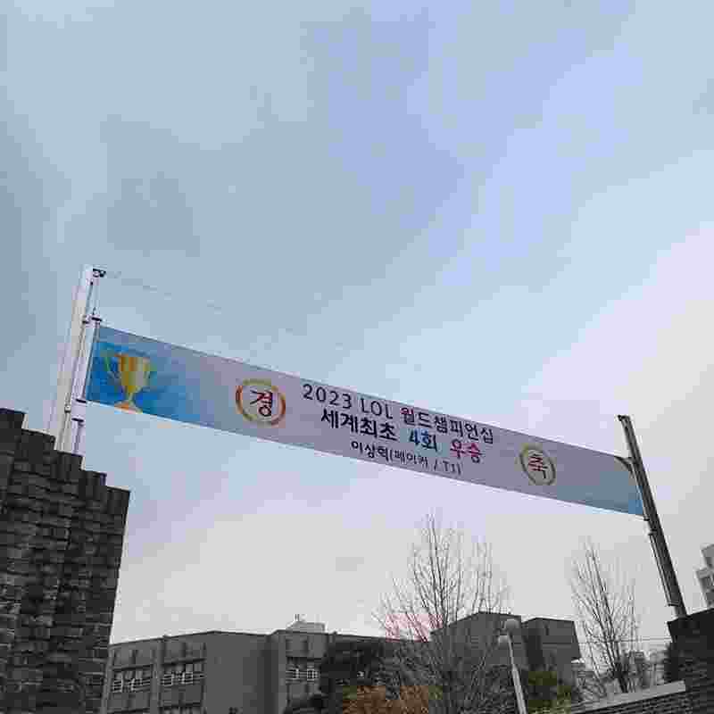11月19日,S13全球总决赛T1横扫WBG拿下冠军,这也是Faker选手职业生涯的第四个S赛冠军,赛后Faker选手母校麻浦高中拉横幅,祝贺Faker拿下S赛四冠。