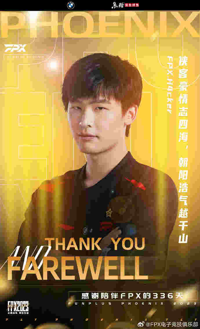 经过俱乐部与本人充分且友好的沟通与协商, FPX电子竞技俱乐部英雄联盟分部打野选手杨志浩@HHH444 即日起正式解除合约, FPX.H4cker断开连接。