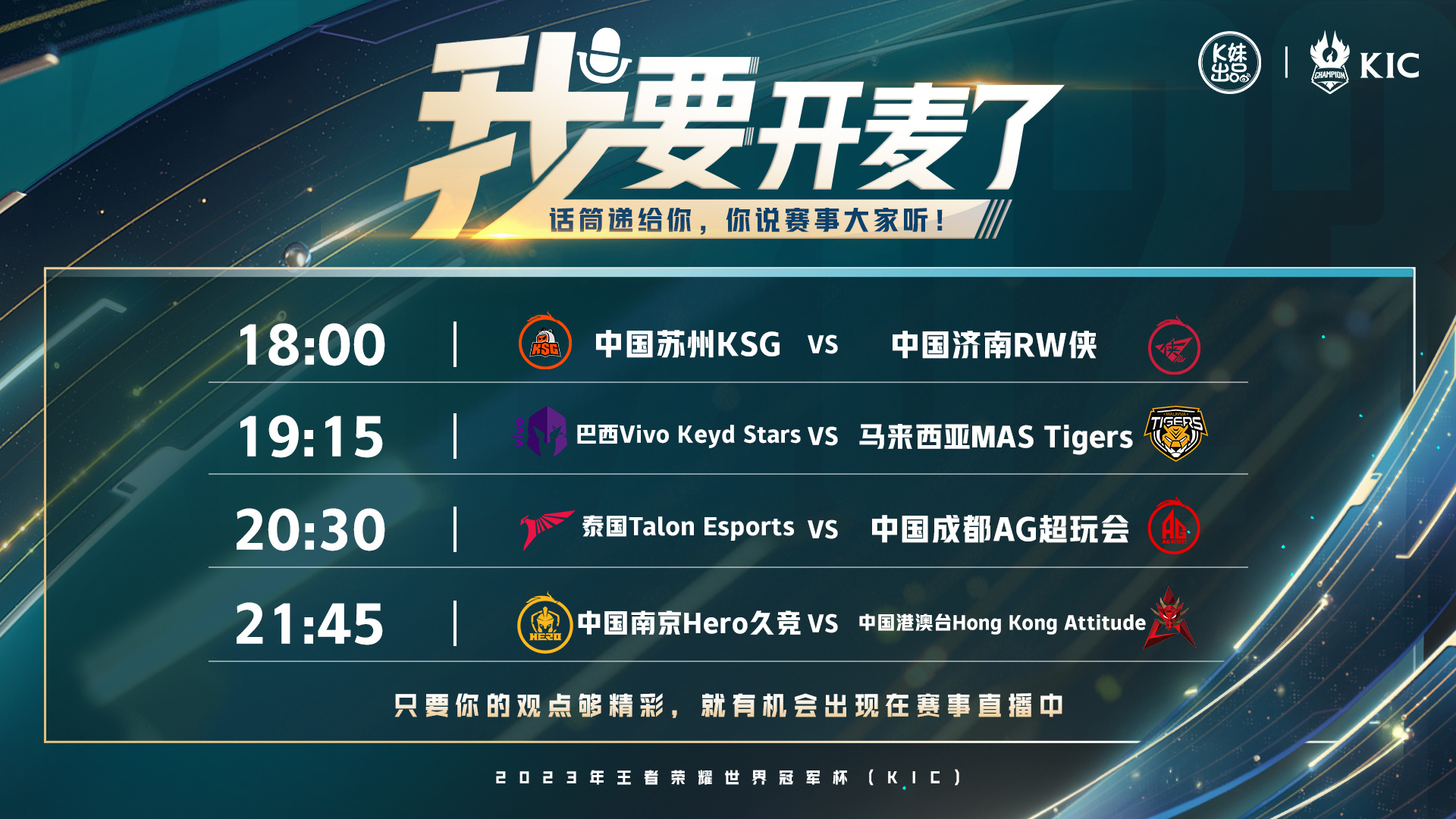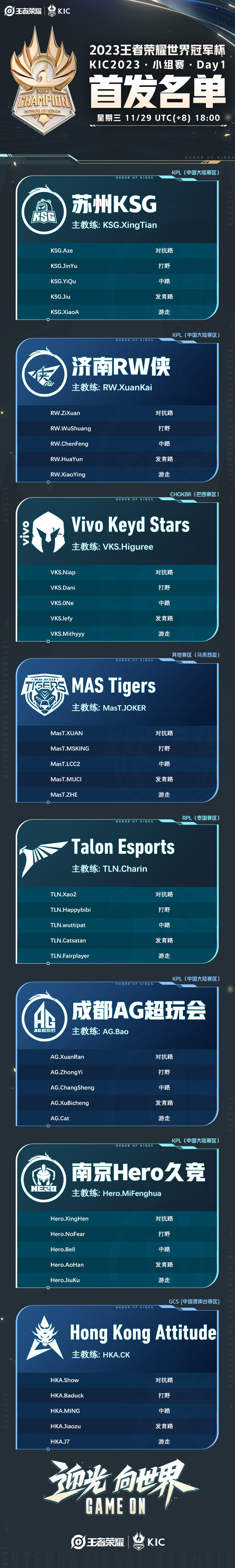 2023王者世冠KIC小组赛首日【首发名单】送达!