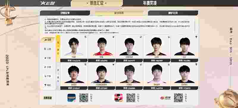 11月30日,2023LPL全明星周末投票已于11月30日14点正式结束,年度最受欢迎选手及各赛事第一顺位、第二顺位选手现已揭晓。以下为结果详情: