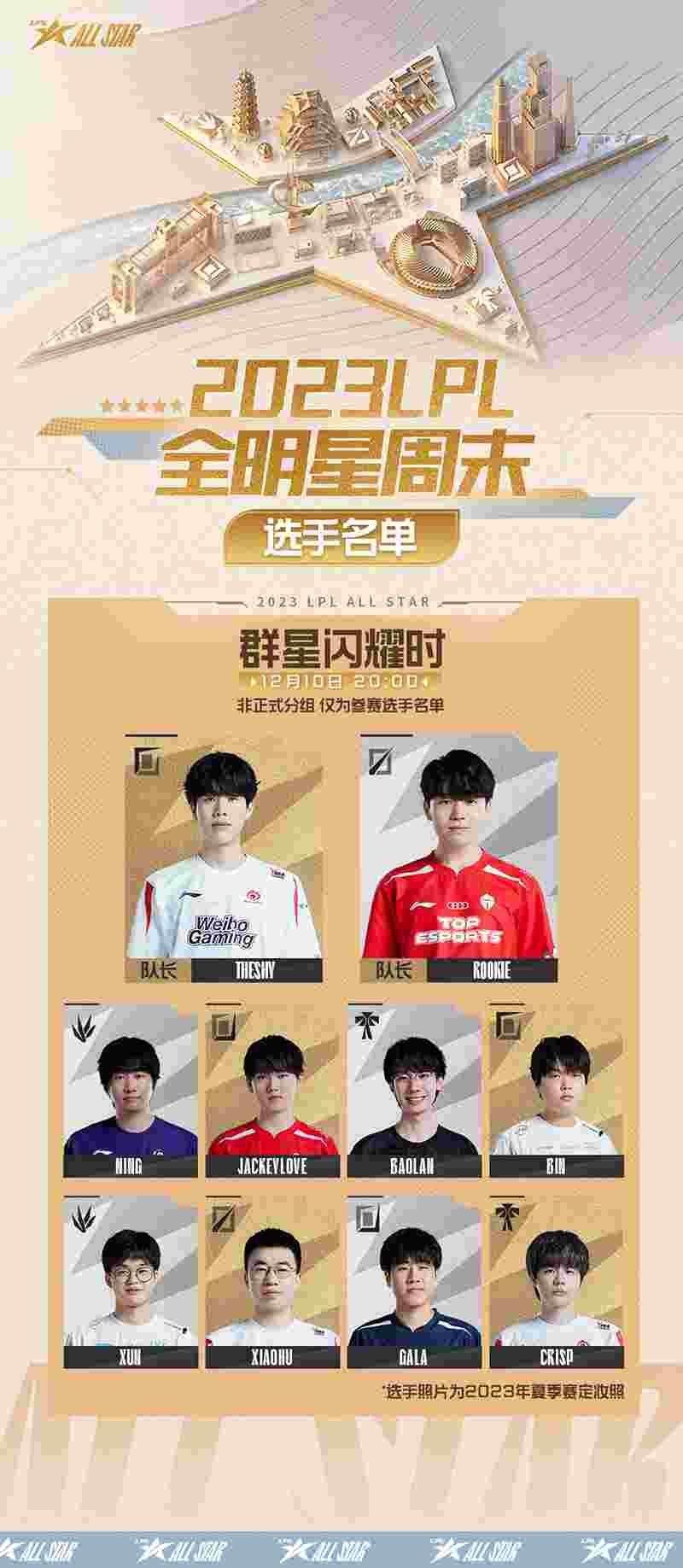 12月2日,英雄联盟赛事官方发布了LPL全明星参赛选手名单。
