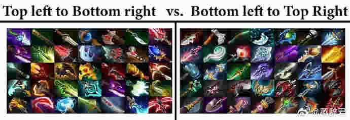 近日国外论坛有一个非常有意思的问题引发讨论,大家喜欢朝向左边的装备呢还是朝向右边的装备呢?可以看到像羊刀、蝴蝶、黑皇杖这样的装备都是朝向左边的,圣剑、吹风、辉耀、跳到这样的装备都是朝向右边的。大家更喜欢哪个风格朝向的装备呢?欢迎在评论区积极讨论互动~