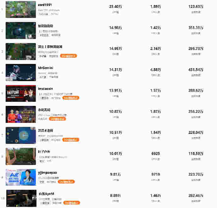 Zard这两天单排上超凡的节目直接让他直播间的弹幕量飙升到全斗鱼第一,直播这一块是真没人做的过翔哥!排名前十的主播里,只有Zard是刀圈主播,而且弹幕量可以说是遥遥领先,远超第二名的智勋。
