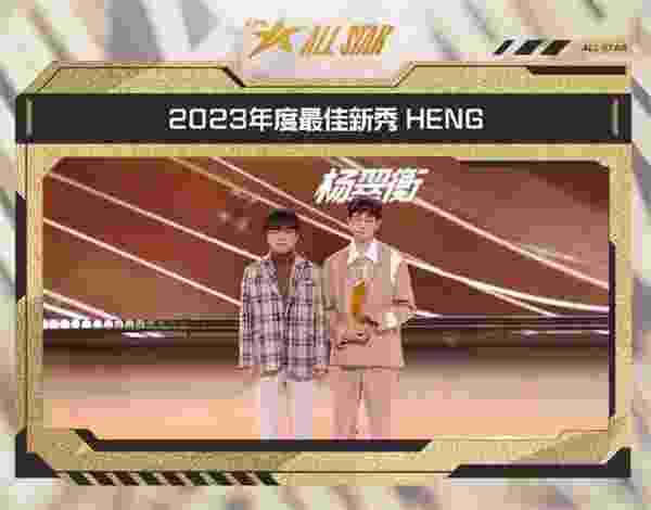 2023LPL全明星周末年度颁奖盛典,WE打野选手Heng荣获2023LPL年度最佳新秀。