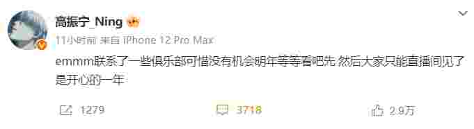 12月11日晚,此前官宣离开UP的总决赛FMVP打野Ning在个人微博更新动态表示春季赛联系了一些队伍试训但是没能得到机会,明年再看看,先直播。