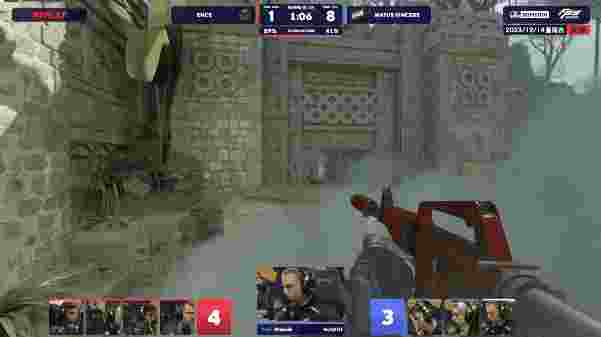 图三为Nuke,先作进攻方的ENCE在外场和NaVi1换2,随后dycha拐正门又拿到双杀,ENCE赢下手枪局。下一局NaVi强起也没取得什么效果,第四局,w0nderful前压外场红箱和对手1换1,jL在黄房上被铁门出来的NertZ击杀,控制住外场的ENCE拐正门击杀A包点的小李子拿到第四分。这分过后NaVi又得eco,比分来到5-0。第六局,w0nderful用狙击枪再次在外场拿到首杀,jL在包点柱子上也拿到双杀,gla1ve从链接摸三楼下被早已上三楼的b1t架死,NaVi得到第一分。这分过后NaVi总算找回了些防守的节奏。第九局,gla1ve配合闪光弹击杀K1的小李子,ENCE顺势下B区,包点的b1t也只杀了一人,ENCE拿到第六分。这分过后NaVi经济崩溃,ENCE继续扩大比分。上半场结束,ENCE以8-4暂时领先。