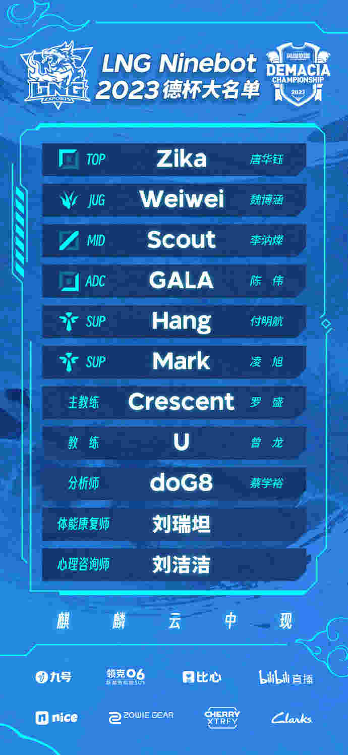 【2023德玛西亚杯• LNG九号电动电子竞技俱乐部参赛名单】
