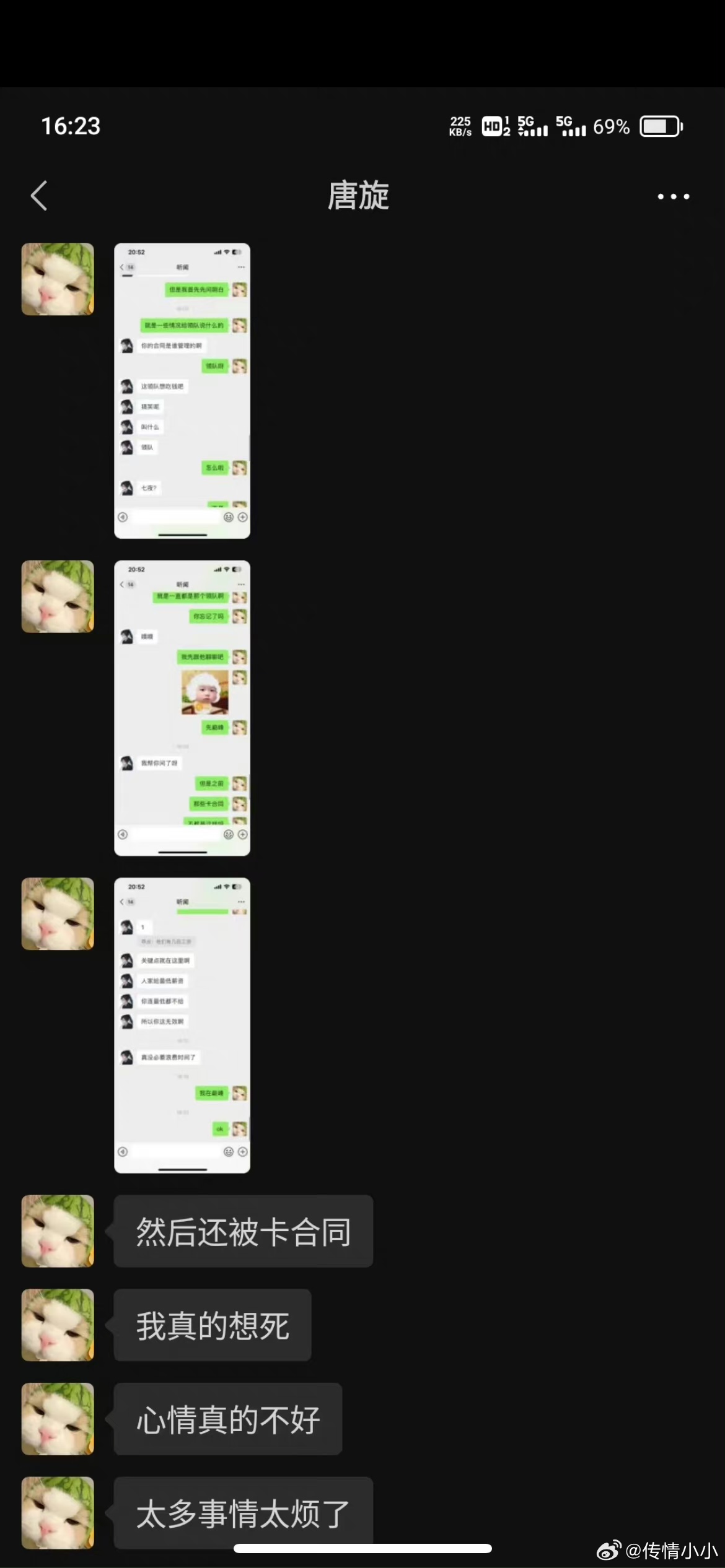 最后一张截图可以看到唐旋说自己“连最低工资都没有”,据知情人士爆料,他被卡合同是在青训约解除之后还有“无工资约”,就是要给俱乐部无偿打工。18岁的孩子刚步入社会就遇到险恶的资本家,他没有办法,也不知道该怎么办,只能在寂静的夜晚草草结束18岁的人生。