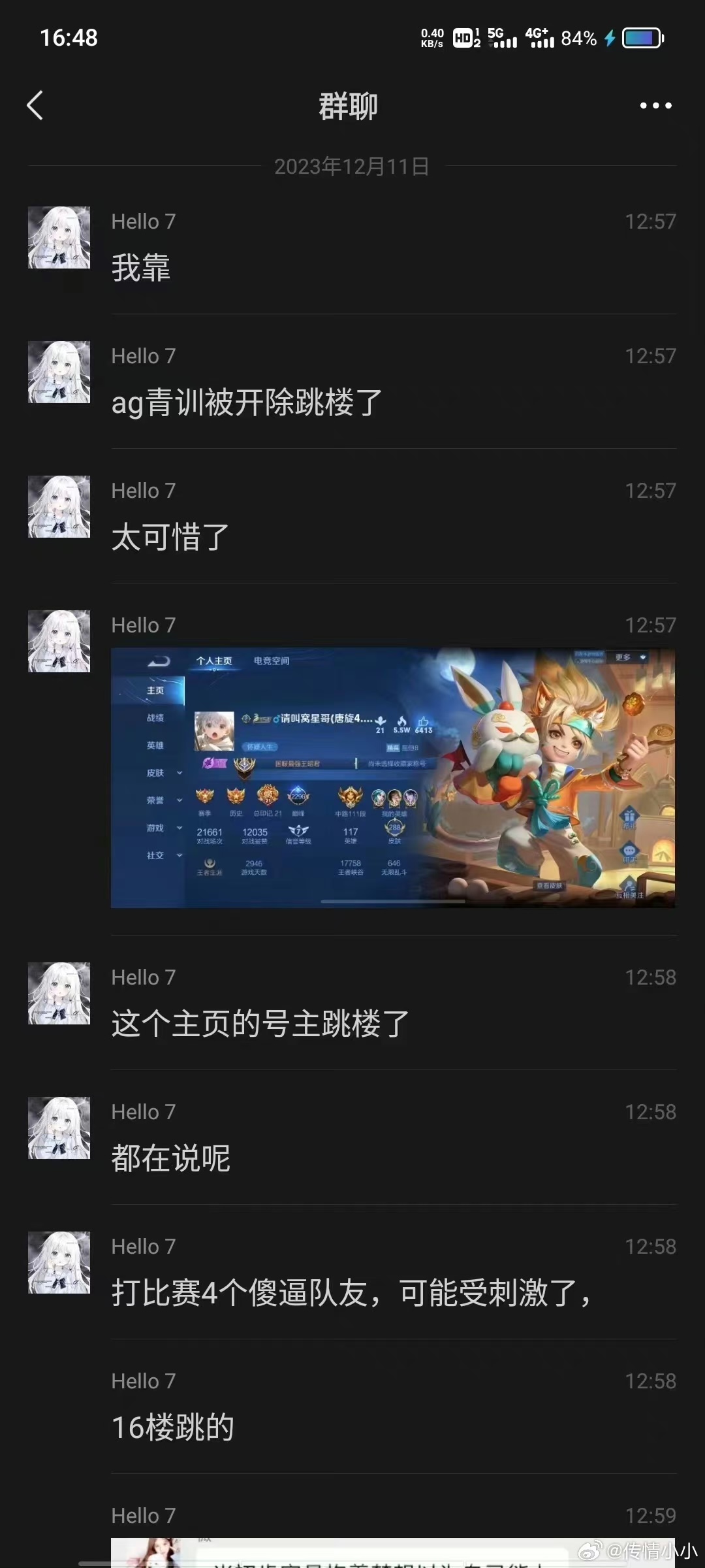 事情爆出来后,仍然有很多ag的粉丝在为ag说话,诸如“你这么菜卡你合同干嘛”之类的发言层出不穷。不说为资本家辩解,起码希望这些粉丝作为人的身份,能够给予一条无辜逝去的生命最基本的尊重。