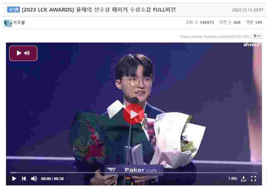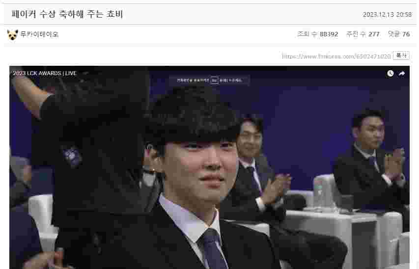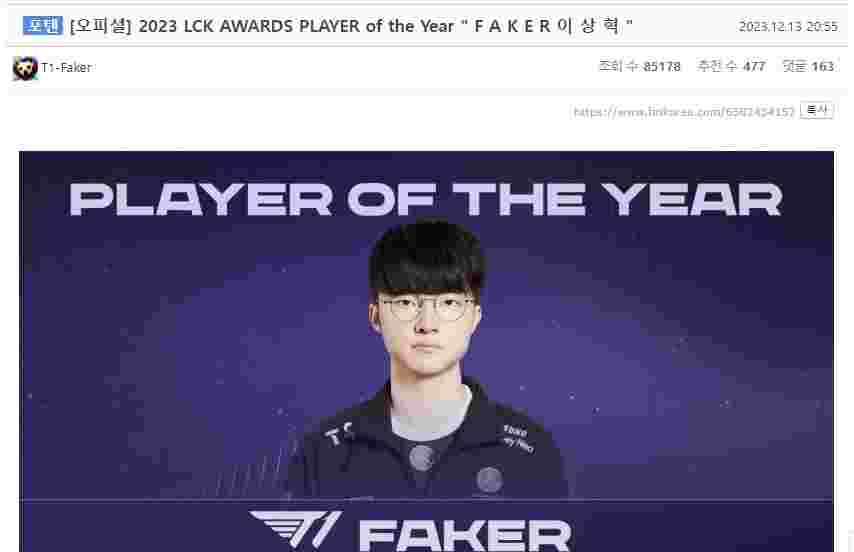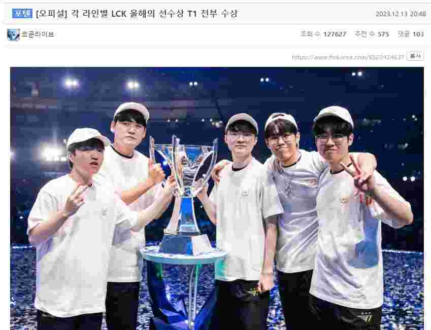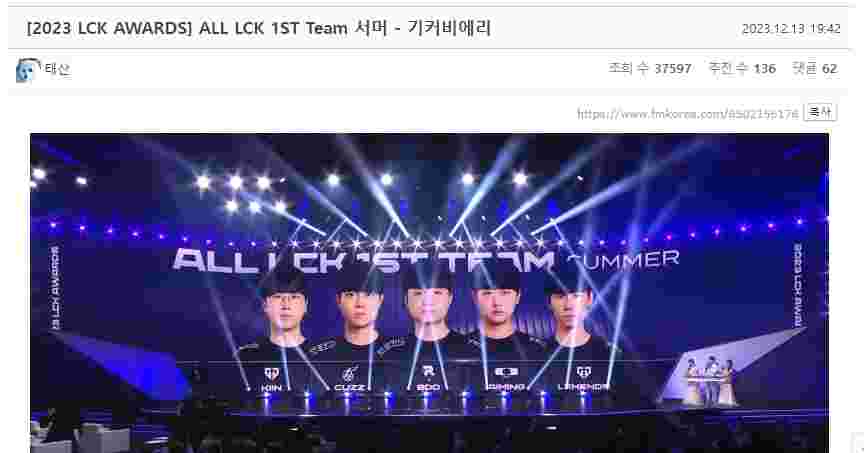 12月13日,2023LCK年度颁奖典礼在韩国举行,韩国网友对此展开了激烈的讨论: