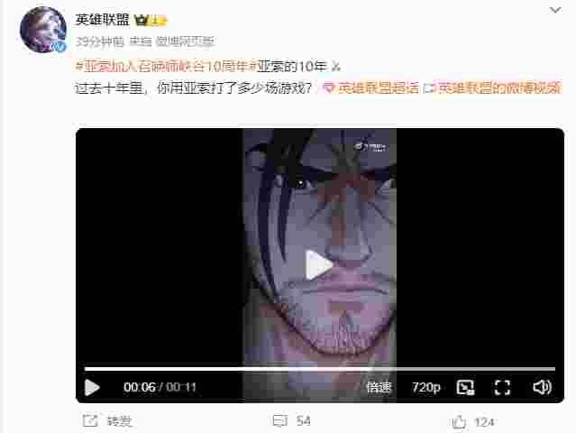 12月14日,英雄联盟官博发文:亚索的10年,过去十年里,你用亚索打了多少场游戏?
