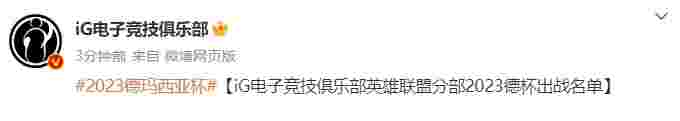 【iG电子竞技俱乐部英雄联盟分部2023德杯出战名单】