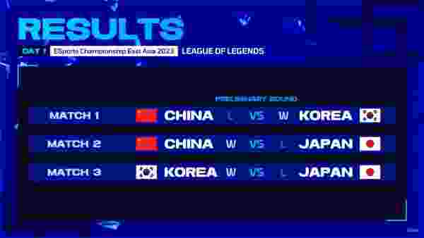 2023中日韩电子竞技大赛小组赛全部结束,日本代表队遭到中国代表队和韩国代表队连续击败,无缘淘汰赛,中韩两支队伍也确定了后天的决赛资格。由于赛程原因,本次赛事小组赛为单循环BO1。