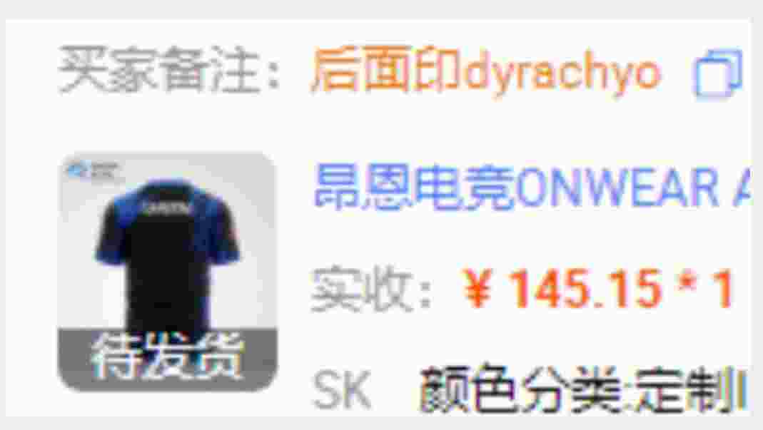 有人说AR夺冠,最大的功臣就是GG战队的一号位dyrachyo了,他在后三局的表现确实有点不尽人意,近日有好事的粉丝订购了一件ar队服,背面却是dyrachyo的id,只能说嘲讽还是水友会嘲讽啊: