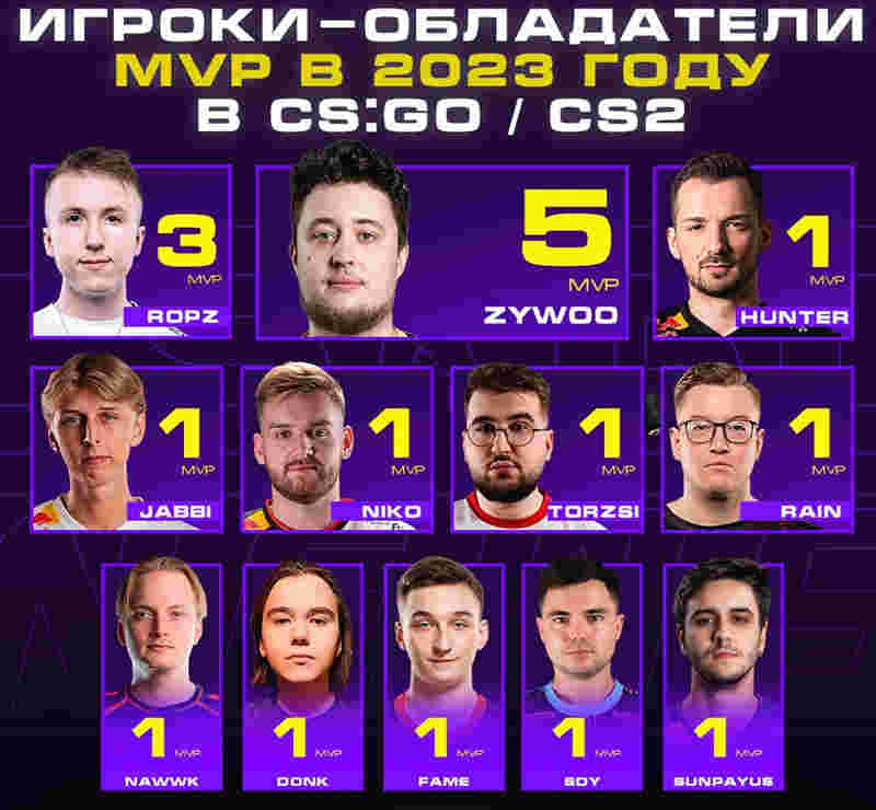 随着BLAST Premier全球总决赛的落幕,2023年度的各项赛事也画上了句号。在今年的比赛中,共有12位选手拿过MVP,其中