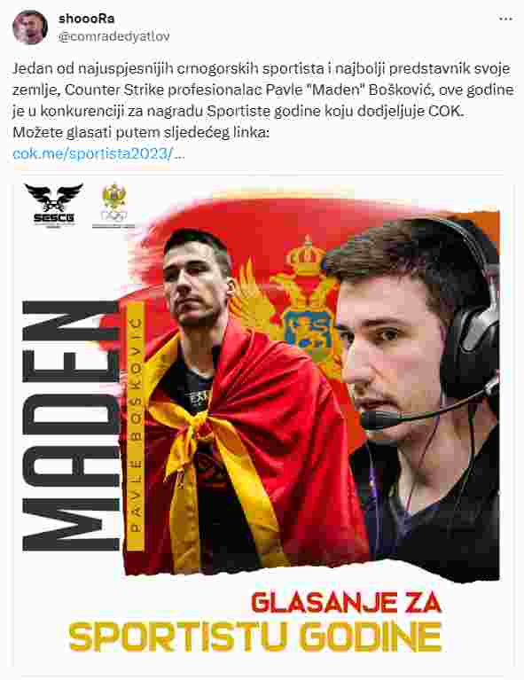 ”我们将在此向您介绍我们黑山的体育明星和最佳运动员:CS职业选手Maden。“