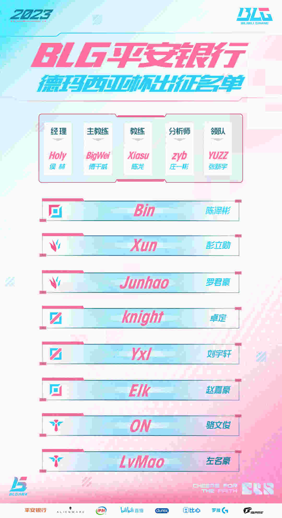 12月20日,2023德玛西亚杯淘汰赛及总决赛将于2023年12月31日至2024年1月6日在上海联盟竞技场举行,刚刚BLG官方公布出征名单。