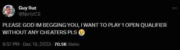 求求你上帝,我想要参加一个没有任何作弊者的公开预选赛,求求了。