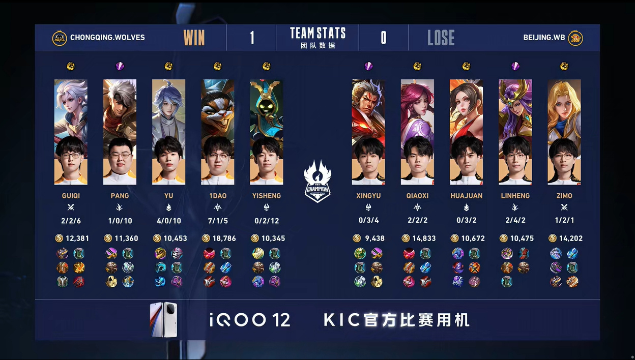 【中国北京WB 0:1 中国重庆狼队】狼队王者荣耀分部 拿下第一局比赛!