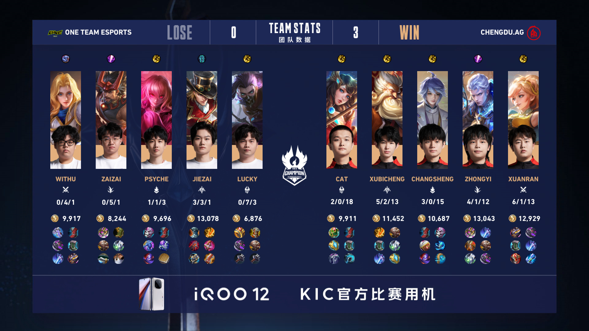 【中国成都AG超玩会 3:0 中国港澳台ONE Team Esports】成都AG超玩会 拿下第三局比赛!