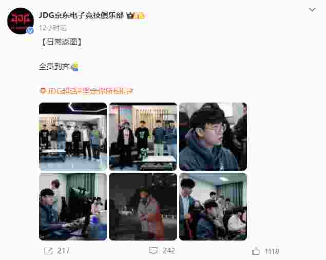近日,JDG电子竞技俱乐部官博更新分享照片,在Ruler从韩国休假回来后,终于全员到齐!