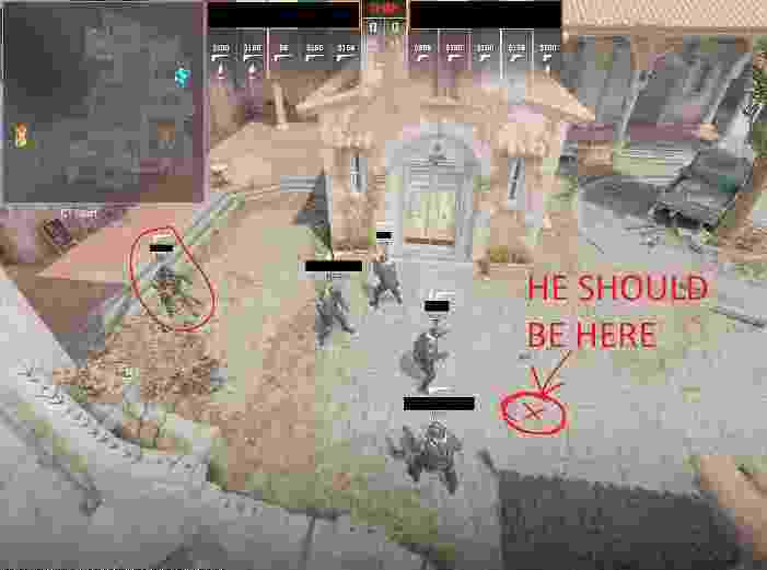 日前论坛CSer分享了自己遇到的不同寻常BUG,在竞技模式中他的队友应该出生在下图标X位置,但却意外出现在了出生点区域之外。