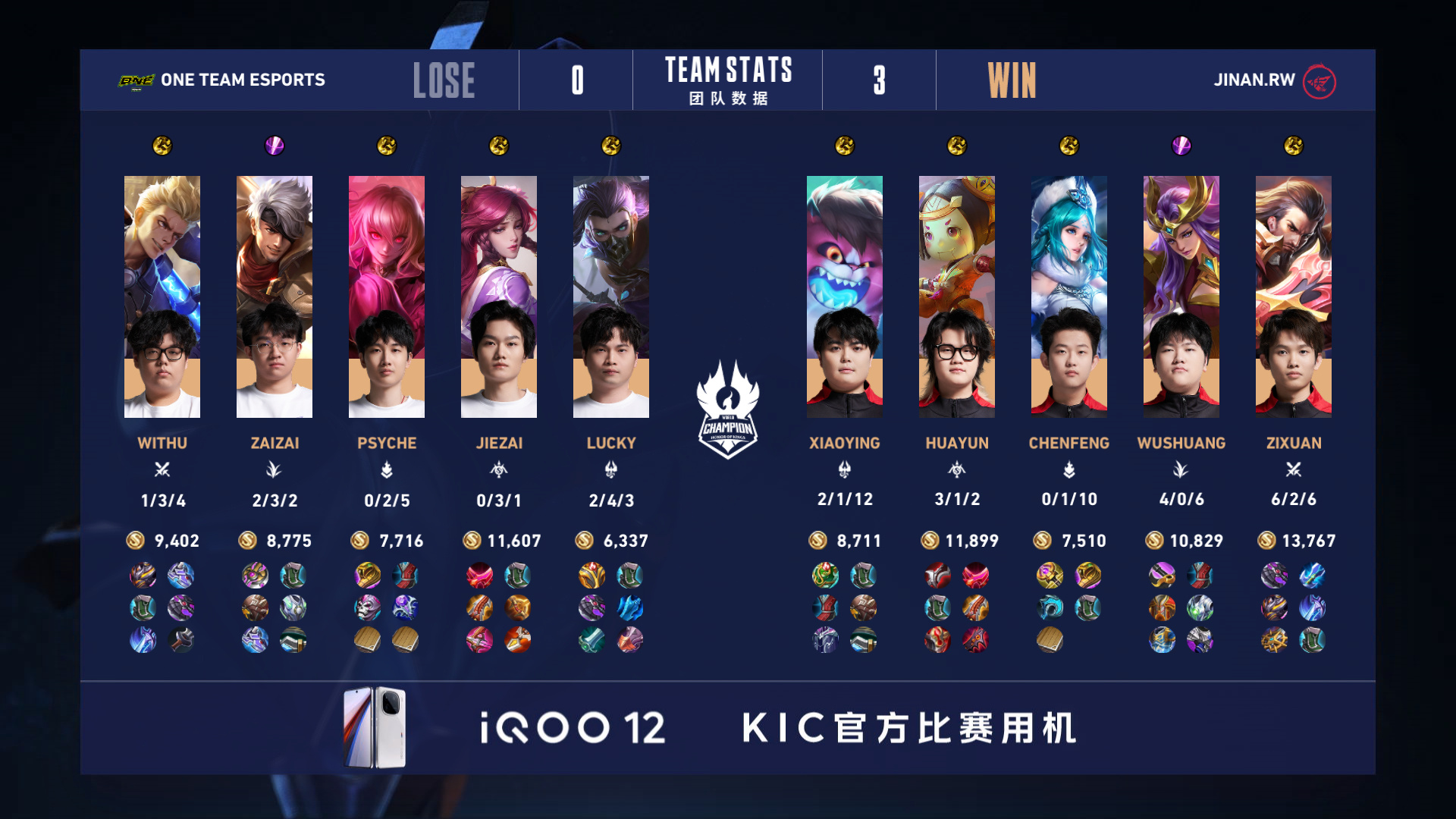 【中国港澳台 ONE Team Esports 0:3 中国济南RW侠】RW侠-王者荣耀 拿下第三局比赛!