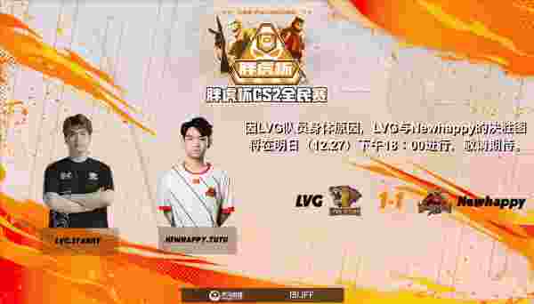 胖虎杯S2,LVG对阵Newhappy,双方大战一触即发。双方战至1-1平后,LVG队员突发身体不适,决胜图原定将延期至12月27日下午6点,最终LVG图三弃权,Newhappy以2-1获得胜利晋级决赛。