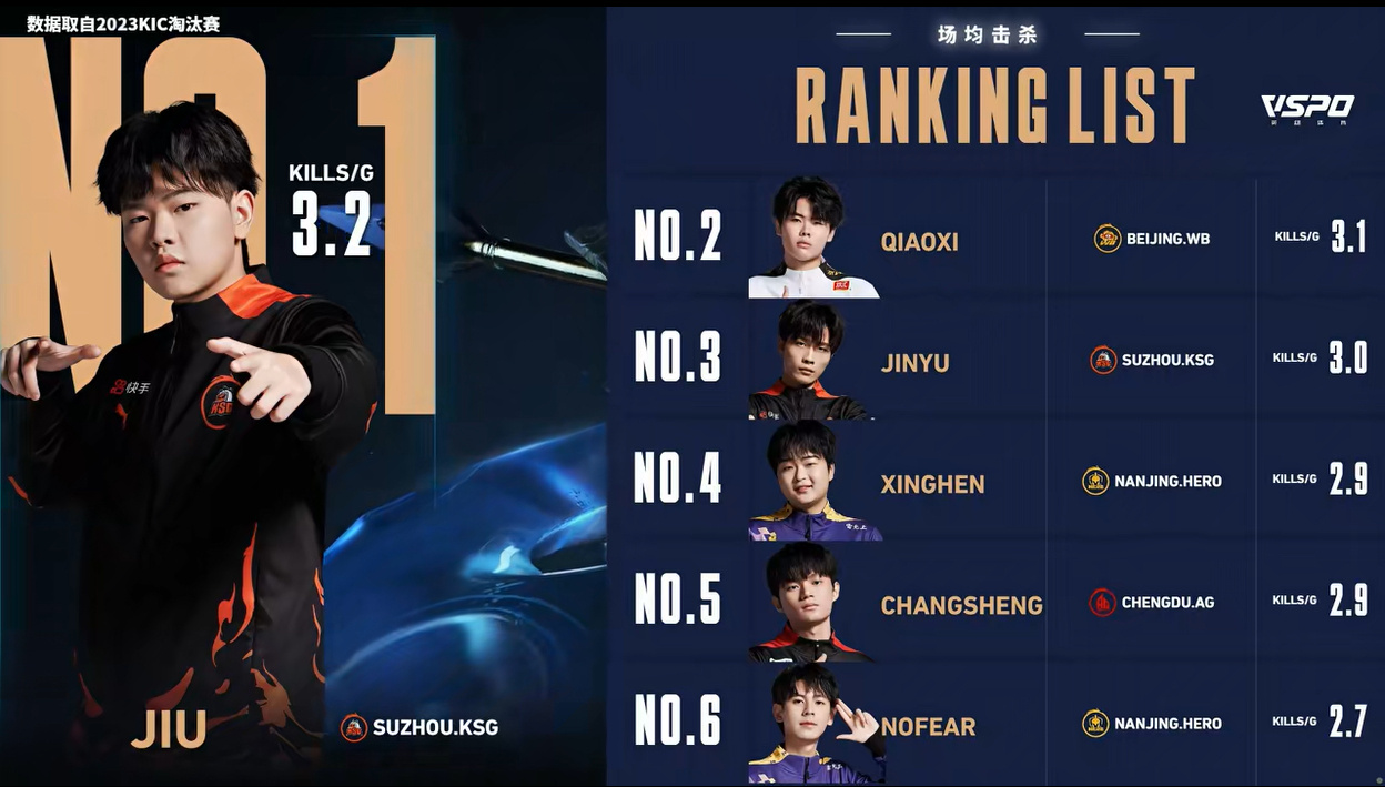【场均击杀数据排名】