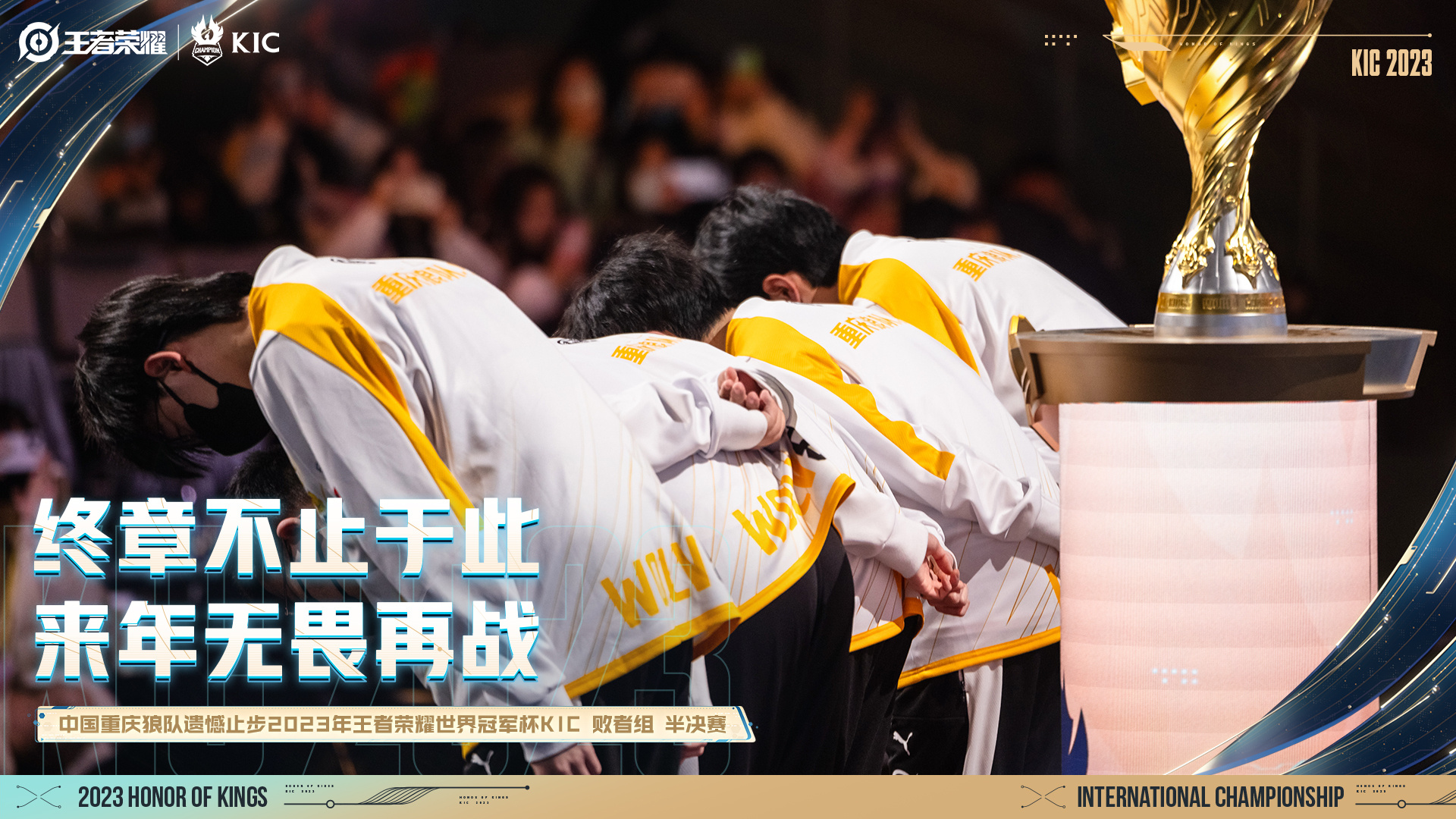 在今日的比赛失利后,中国重庆狼队结束了他们在本届王者世冠KIC的征程。作为世冠KIC的常客,中国重庆狼队以积分榜榜首的身份晋级,他们就像狼群一样协同作战,共同面对每一次的困难和挑战。