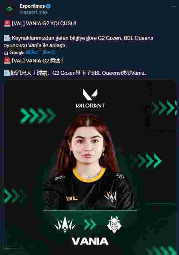 在Glance官宣离队之后,G2 Gozen的首要任务就是签下一名足以支撑队伍火力单位的控制位(烟位),而他们最终选择了BBL Queen战队的土耳其女选手-Vania。