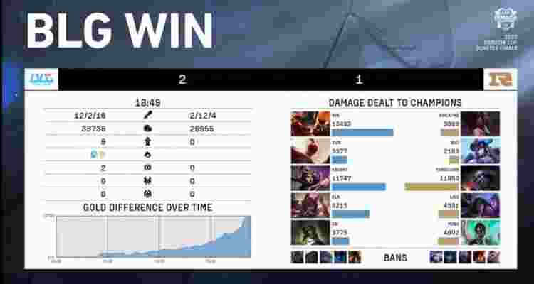 【18:00】双方再次开打,Bin无解肥兰博直接上了高地开始搞烧烤!巨大的伤害下RNG没有人可以扛得住!Bin兰博一打四轮流烧烤完成四杀!BLG团灭RNG一波结束比赛!