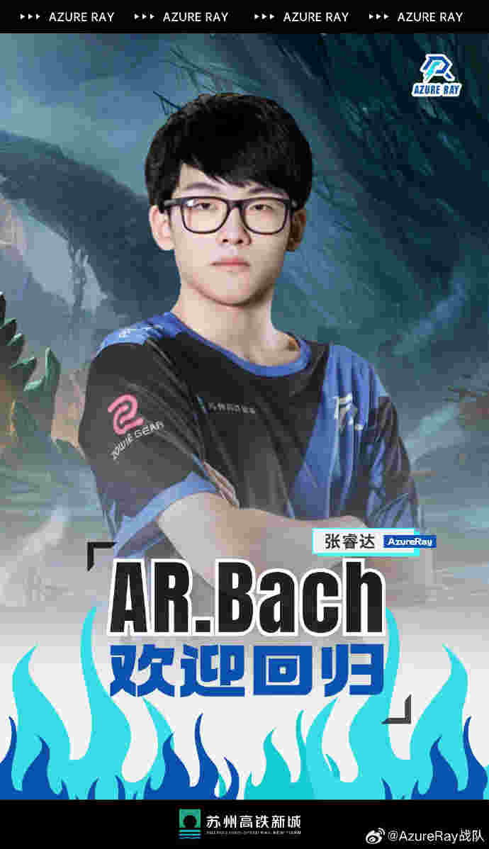 经过友好协商,在完全尊重选手本人意愿的前提下,即日起选手 张睿达(ID:由之前的Faith_Bian改为Bach)正式复出,加入AzureRay战队,任职三号位。