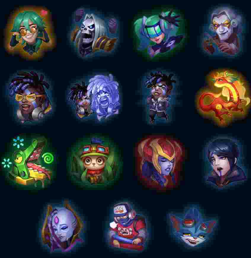 美测服新实装的表情,其中包括云顶S10赛季相关表情。