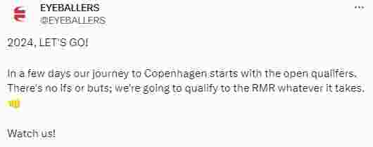“2024继续冲!几天之后,我们就要开始哥本哈根 Major 公开预选赛的征途了。没有如果或者但是,我们会不惜一切代价夺取RMR的参赛资格。