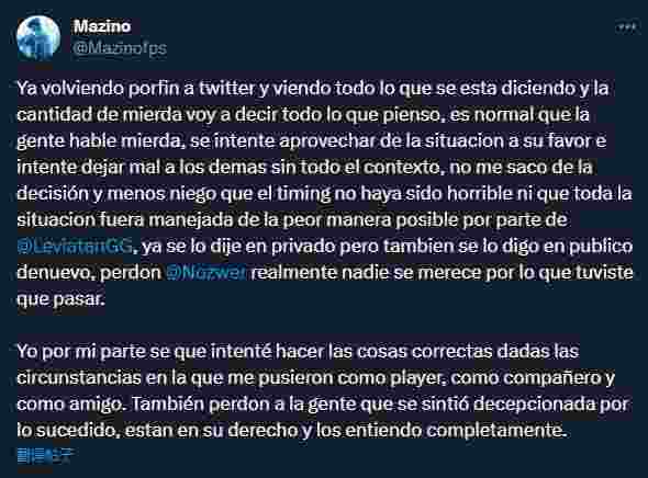 近几天北美区争议最大的话题不外乎与Leviatan的临阵换将一事了,在Aspas表示但删帖后,同队队员Mazino也站出来表示了一些自己的想法,然而文字内容很明显受到了战队的一些要求,说的有些模棱两可。