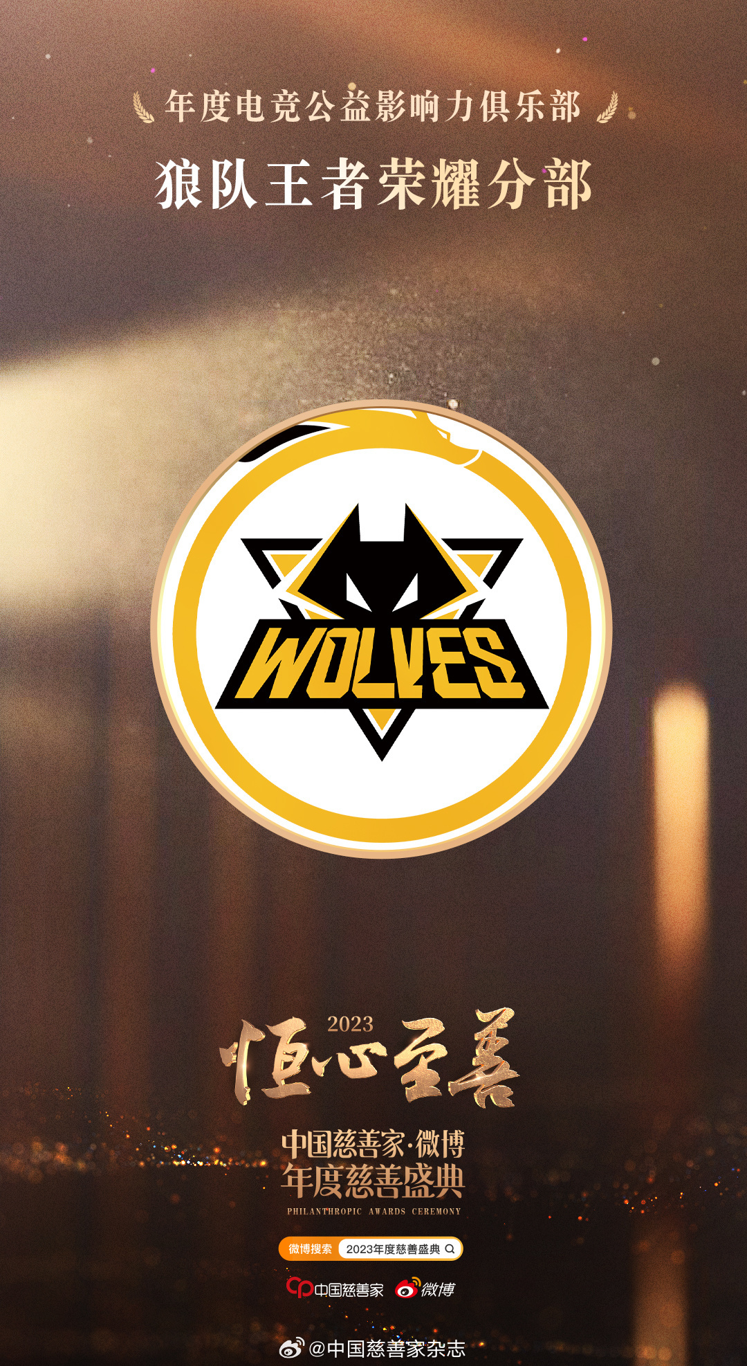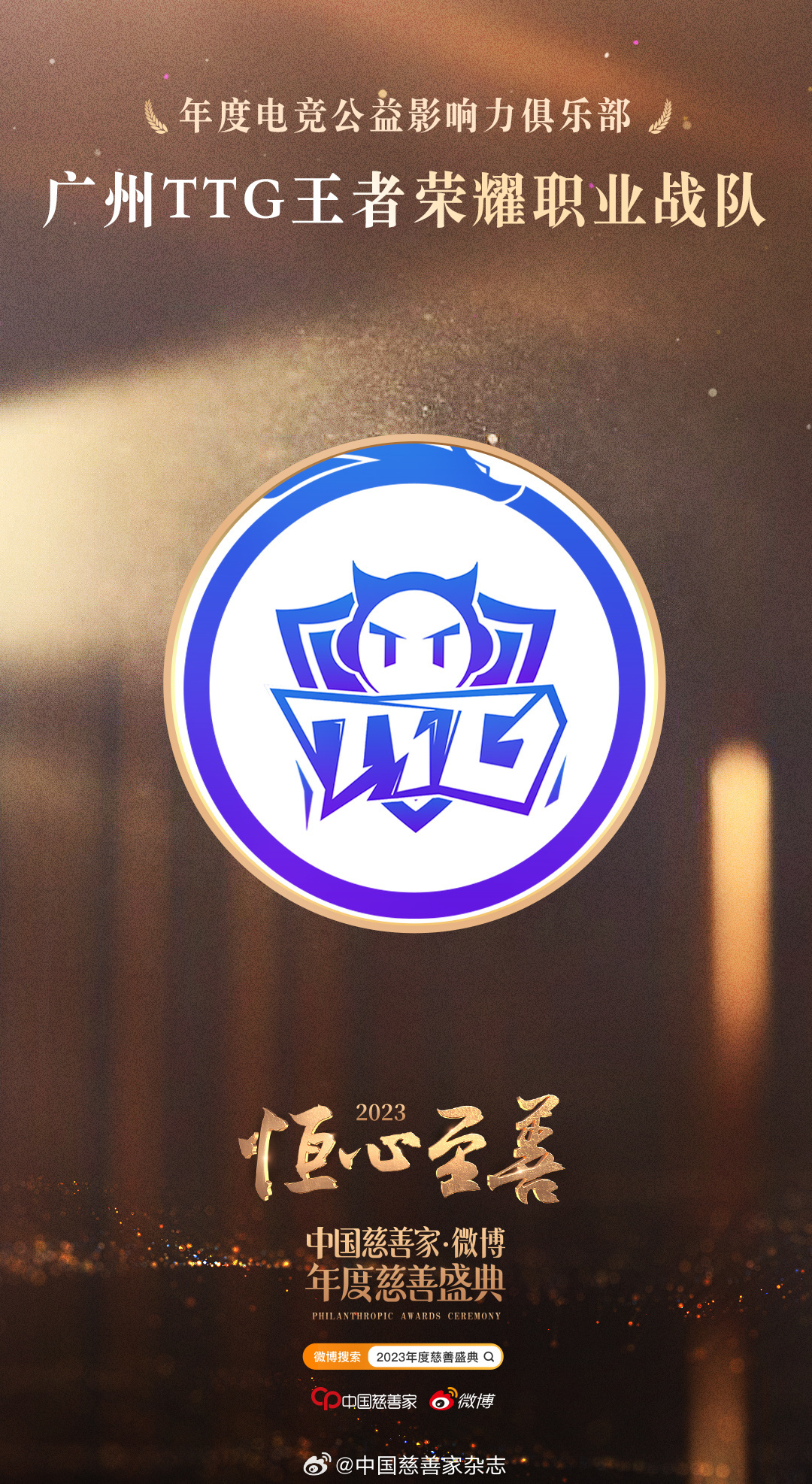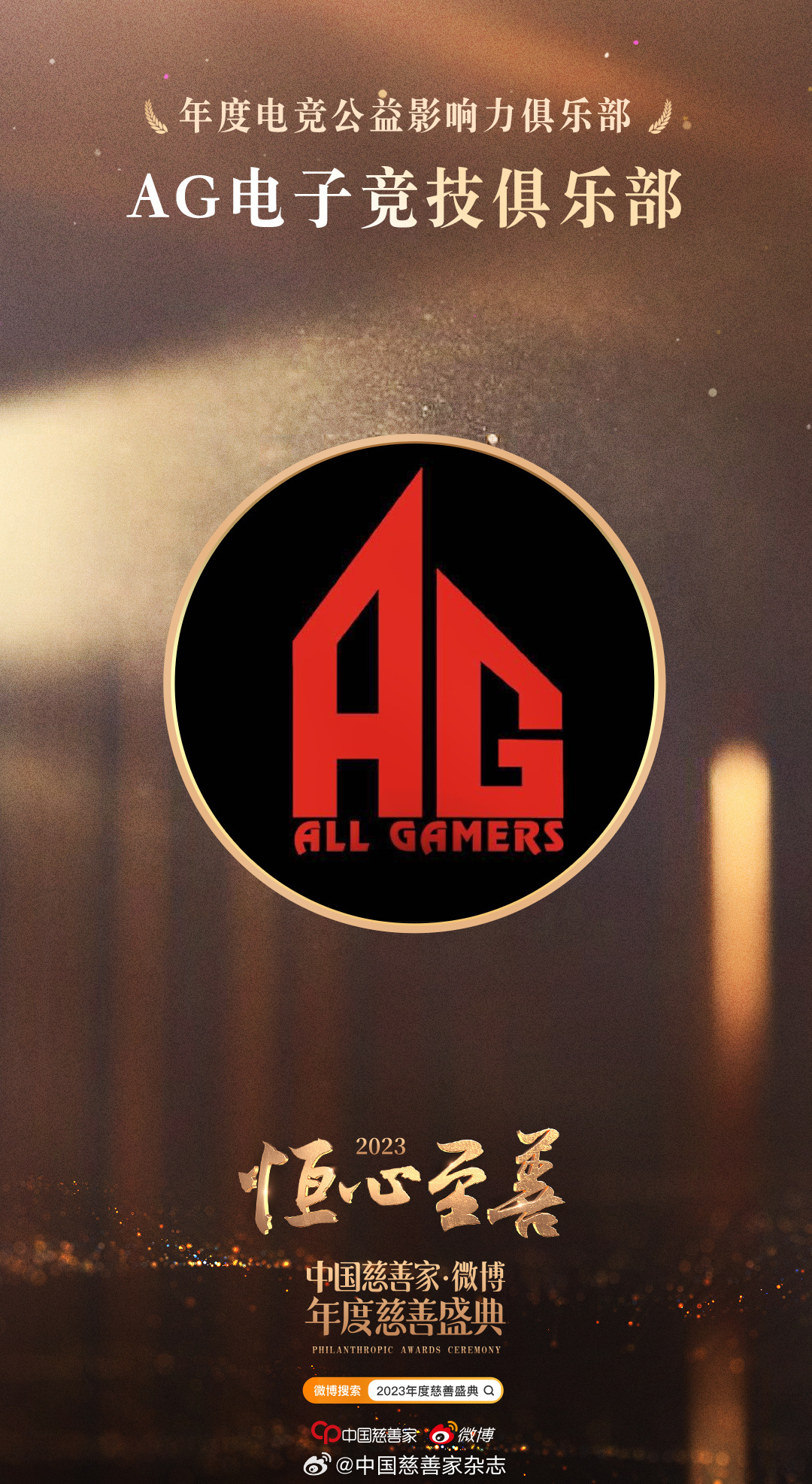 【2023年度慈善盛典 年度电竞公益影响力俱乐部】在网络游戏的世界里有一片公益的土壤。这几年,越来越多的电竞选手投身到公益当中,他们不仅身体力行去做捐赠、做志愿服务、扶助弱小,还带动了他们巨大的粉丝群体一起来了解公益、参与公益。获得“年度公益星力量——电竞公益影响力”奖项的是: