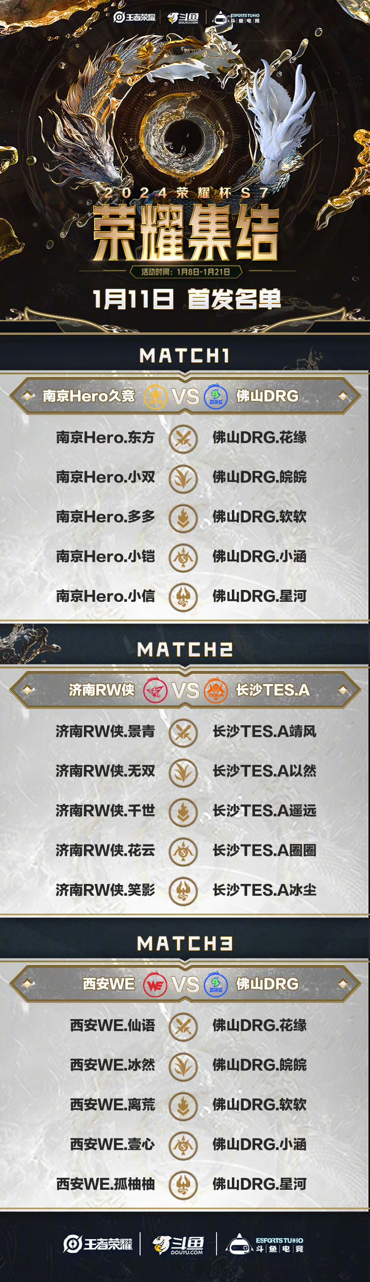 【荣耀杯S7赛事今日对阵关系及首发名单】