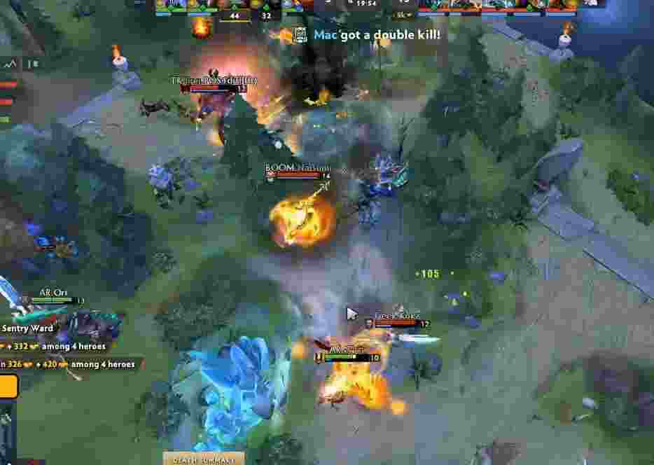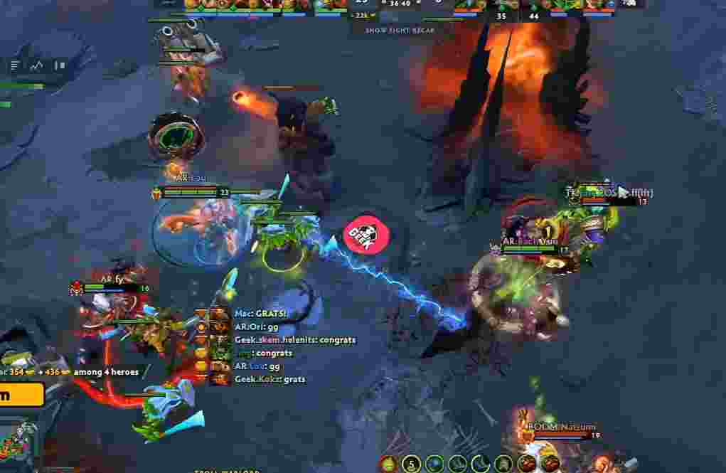 32分钟Geek再次打掉肉山,气势汹汹杀到AR下路,兽王鱼叉回露娜后瞬间将其秒掉。但Geek技能全交也不好继续推,暂且撤退。