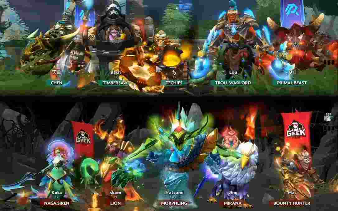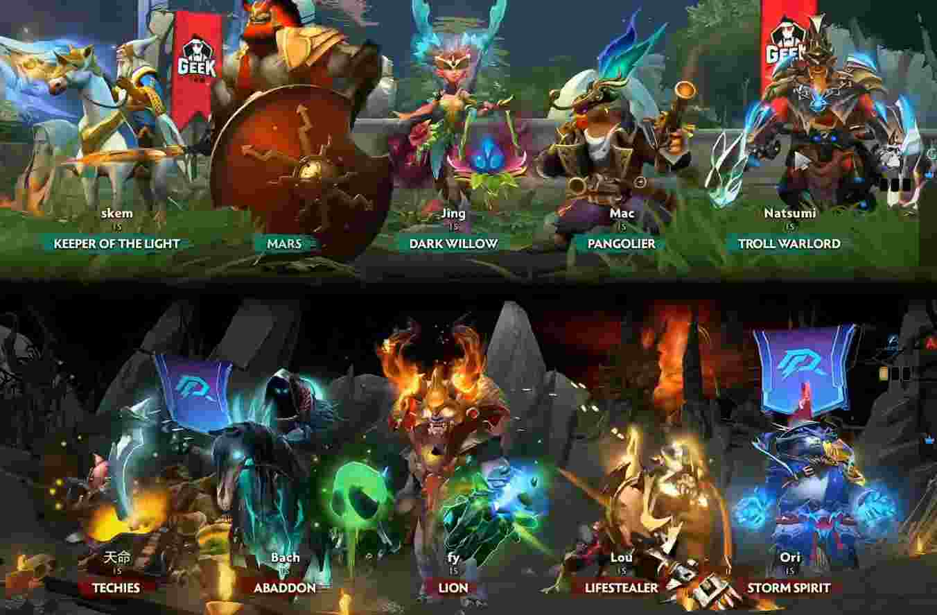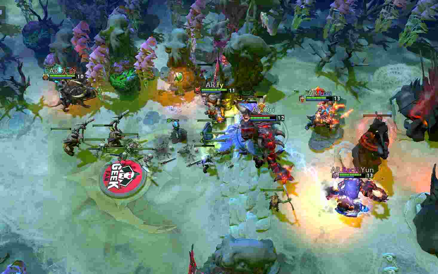 Geek气势汹汹杀到AR高地,轻松推掉上路。凤凰绕后想办法引走宙斯船长,猛犸趁机对落单小狗动手打掉其不朽盾。但小狗起身后Geek众人支援到位,AR只得作罢撤退。