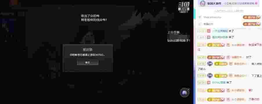 近日斗鱼DOTA2主播墨岩彧直播低分段炸鱼,DOTA2国服账号现身直播间,直播时当场直接封禁账号,大快人心。