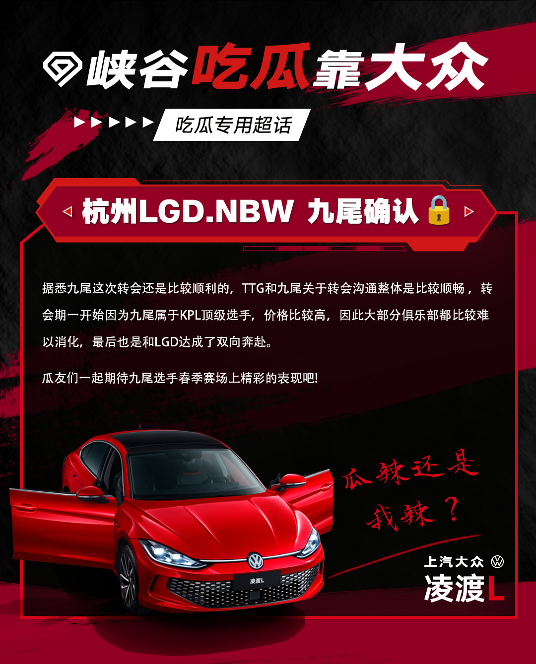 靠谱瓜主爆料,杭州lgd与九尾签约成功,明年春季赛九尾将在杭州lgd首发上场。