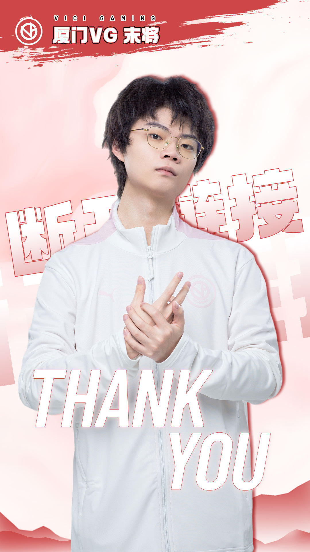 经过双方充分沟通和友好协商后,在尊重选手本人意愿的前提下,现正式宣布,原厦门VG王者荣耀战队选手厦门VG丶末将(胡林烨)正式离队,断开连接,成为自由人。