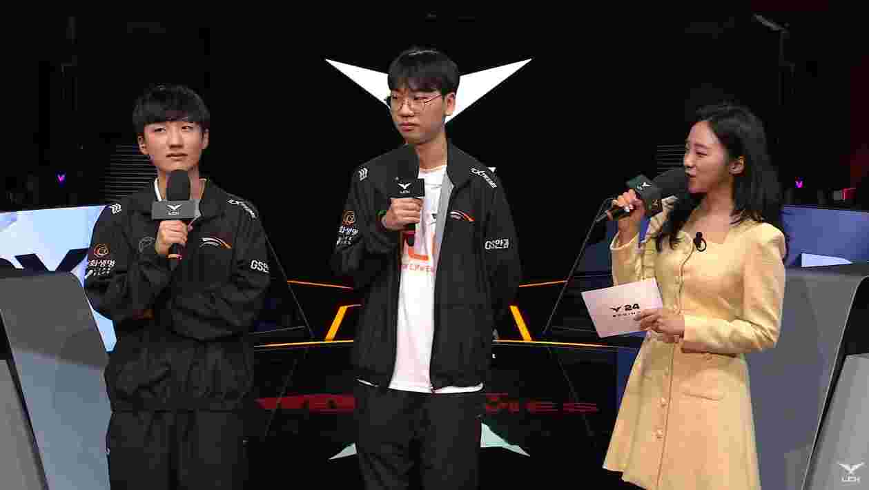 本赛季Peanut和Doran一起转会至HLE,他们俩分别取得第一第二局的POG选手;赛后他们也接受韩文流主舞台主持人的采访。