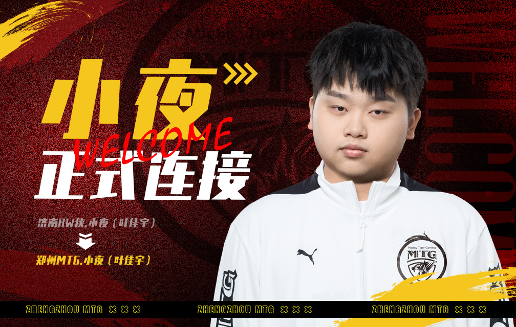 经过三方友好沟通与协商,在充分尊重选手个人意愿的前提下,即日起,原RW侠-王者荣耀 打野位选手 济南RW侠.小夜(叶佳宇)正式以租借的形式加入郑州MTG猛虎电竞俱乐部,与我们一起征战2024K甲春季赛。
