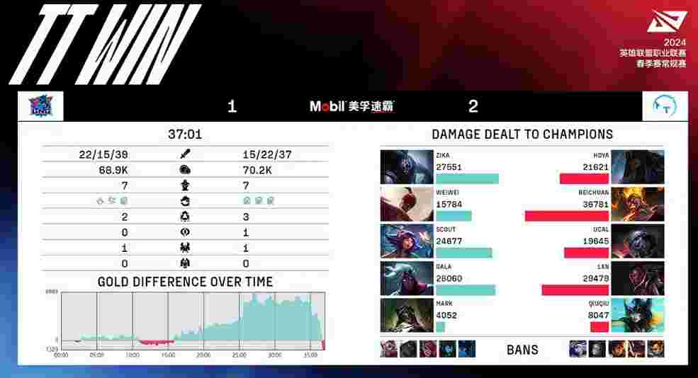 北京时间2024年1月25日,LPL春季赛LNG对阵TT,这场比赛反复仰卧起坐,最终TT抓住机会战胜LNG,拿下首胜!下面是本场比赛的赛事播报。