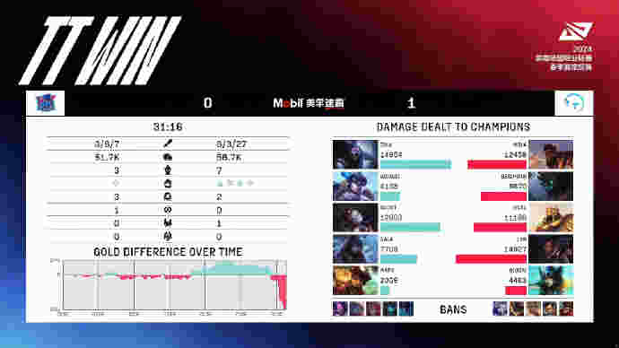 第23分钟,TT付出野辅的代价拿下小龙,拖缓了LNG的龙魂节奏。第25分钟,Beichuan失误直接白给,LNG趁势直接动大龙,TT来阻止结果中上两路再次被击杀,LNG全身而退。