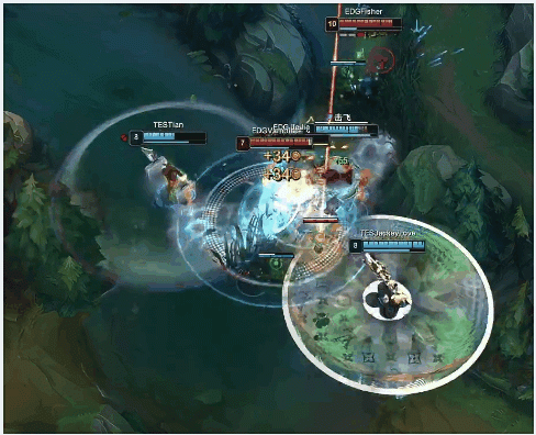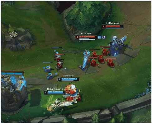 【5:54】EDG下路三人越塔想杀卢锡安,卢锡安闪现转好向后撤退,小炮随后来下支援带走残血米利欧,茂凯此时收掉三条虚空巢虫。茂凯来中路帮助兰博控住发条,兰博鱼叉烧烤齐上带走发条,TES打出0换3,经济领先2k。