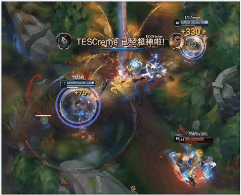 【13:24】下路开团,盲僧直接挂赵信Q但自己被赛娜点死,阿卡丽秒掉芮尔,TES打出0换2,经济优势来到7k。
