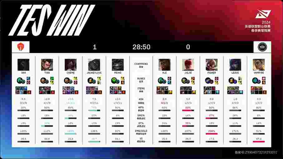 北京时间1月27日,2024年LPL春季赛第一周第六日第三场,由TES对阵EDG。